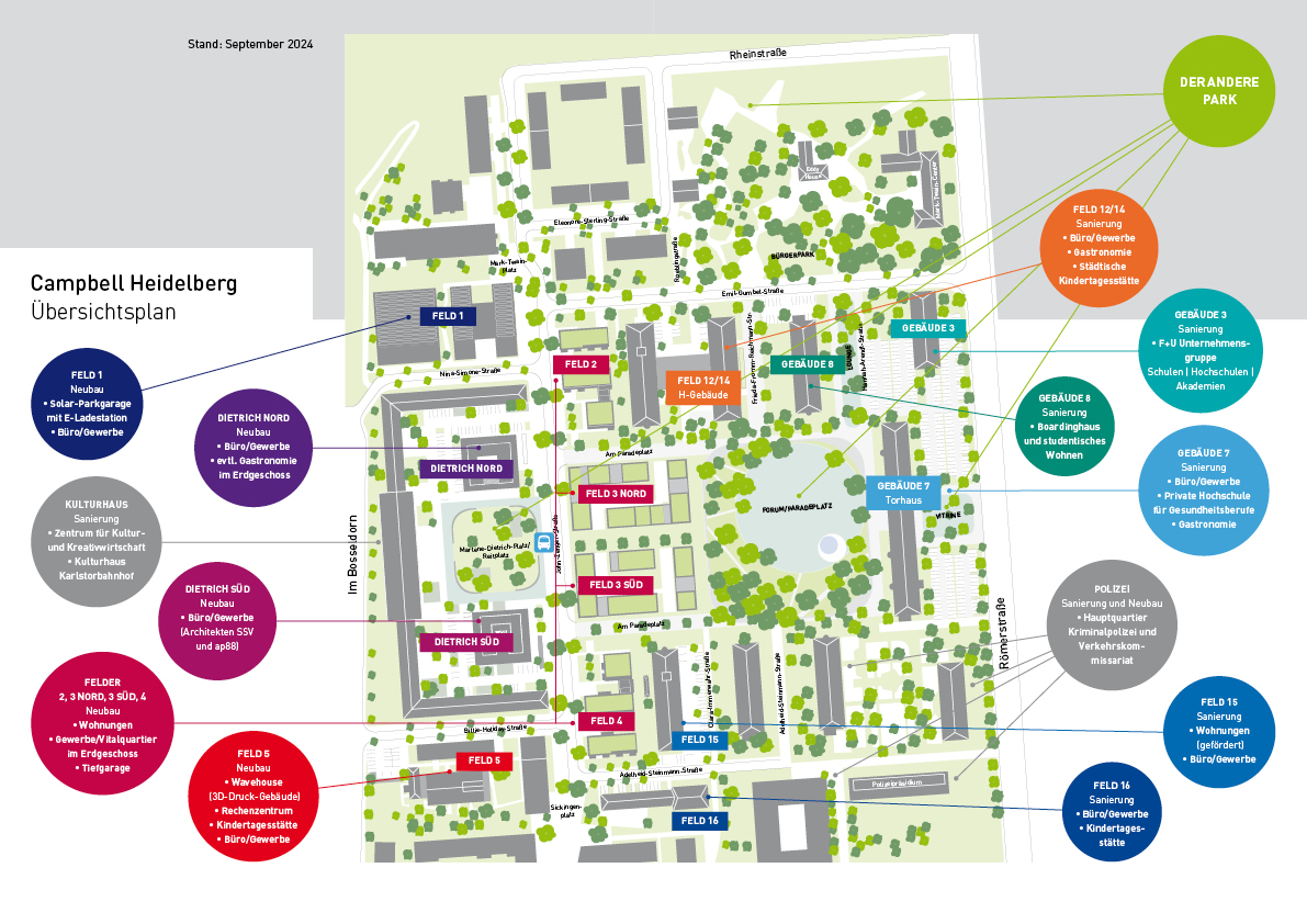 Dort, wo in der Heidelberger Südstadt die United States Army in den vergangenen Jahrzehnten auf dem Gelände der ehemaligen Großdeutschlandkaserne ihr Quartier hatte, entsteht ein neues Quartier zum Arbeiten, Lernen und Wohnen.