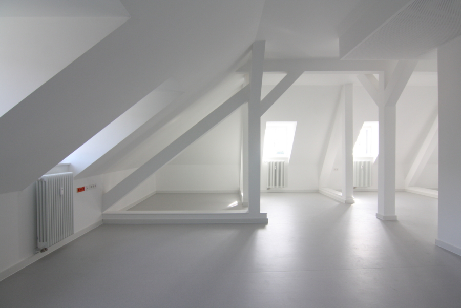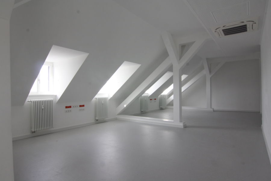 Innerhalb des Quartiers (www.campbell-heidelberg.de) befindet sich auf dem Baufeld 15 ein denkmalgeschützter, kernsanierter Altbau mit Gewerbe- und Wohneinheiten, die teilweise bereits vermietet sind. Die zur Vermietung stehende Fläche im Dachgeschoss umfasst ca. 213 m² und ist durch das Treppenhaus oder den Personenaufzug erreichbar.