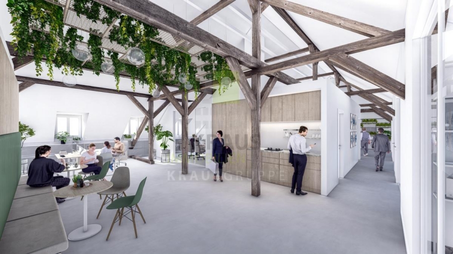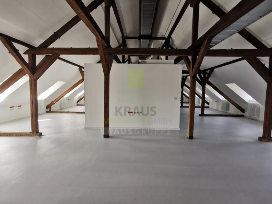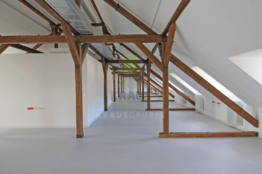 Innerhalb des Quartiers (www.campbell-heidelberg.de) befindet sich auf dem Baufeld 15 ein denkmalgeschützter, kernsanierter Altbau mit Gewerbe- und Wohneinheiten, die teilweise bereits vermietet sind. Die zur Vermietung stehende Fläche im Dachgeschoss umfasst ca. 416 m² und ist durch das Treppenhaus oder den Personenaufzug erreichbar.