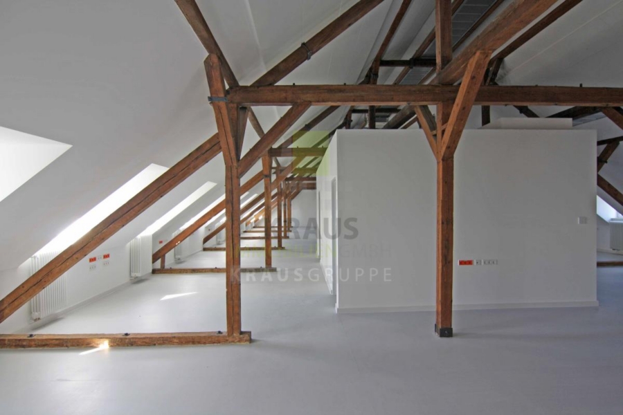 Innerhalb des Quartiers (www.campbell-heidelberg.de) befindet sich auf dem Baufeld 15 ein denkmalgeschützter, kernsanierter Altbau mit Gewerbe- und Wohneinheiten, die teilweise bereits vermietet sind. Die zur Vermietung stehende Fläche im Dachgeschoss umfasst ca. 416 m² und ist durch das Treppenhaus oder den Personenaufzug erreichbar.